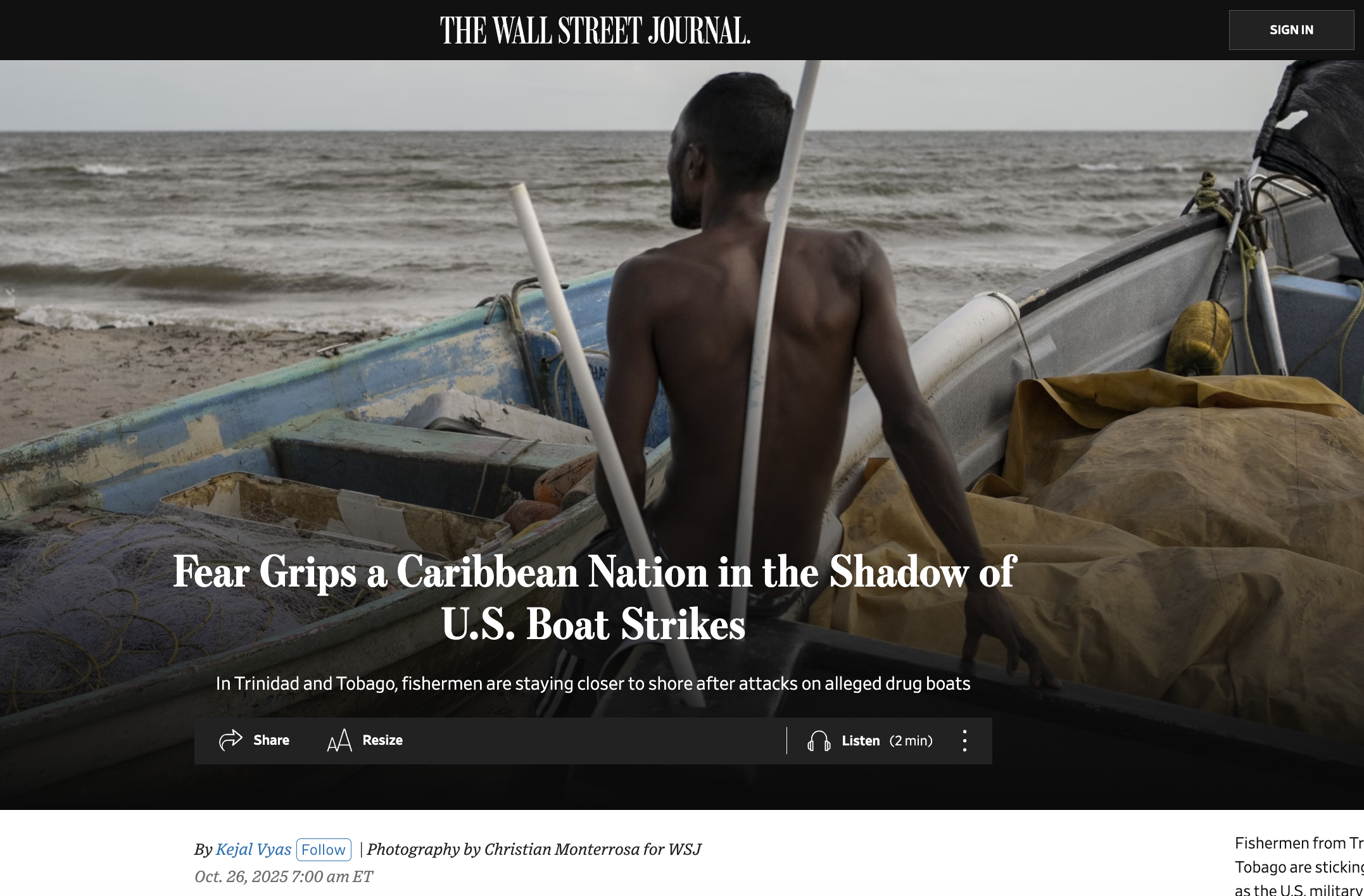 Wall Street Journal: Fear Grips a Carribean Nation in the Shadow of U.S. Boat Strikes
